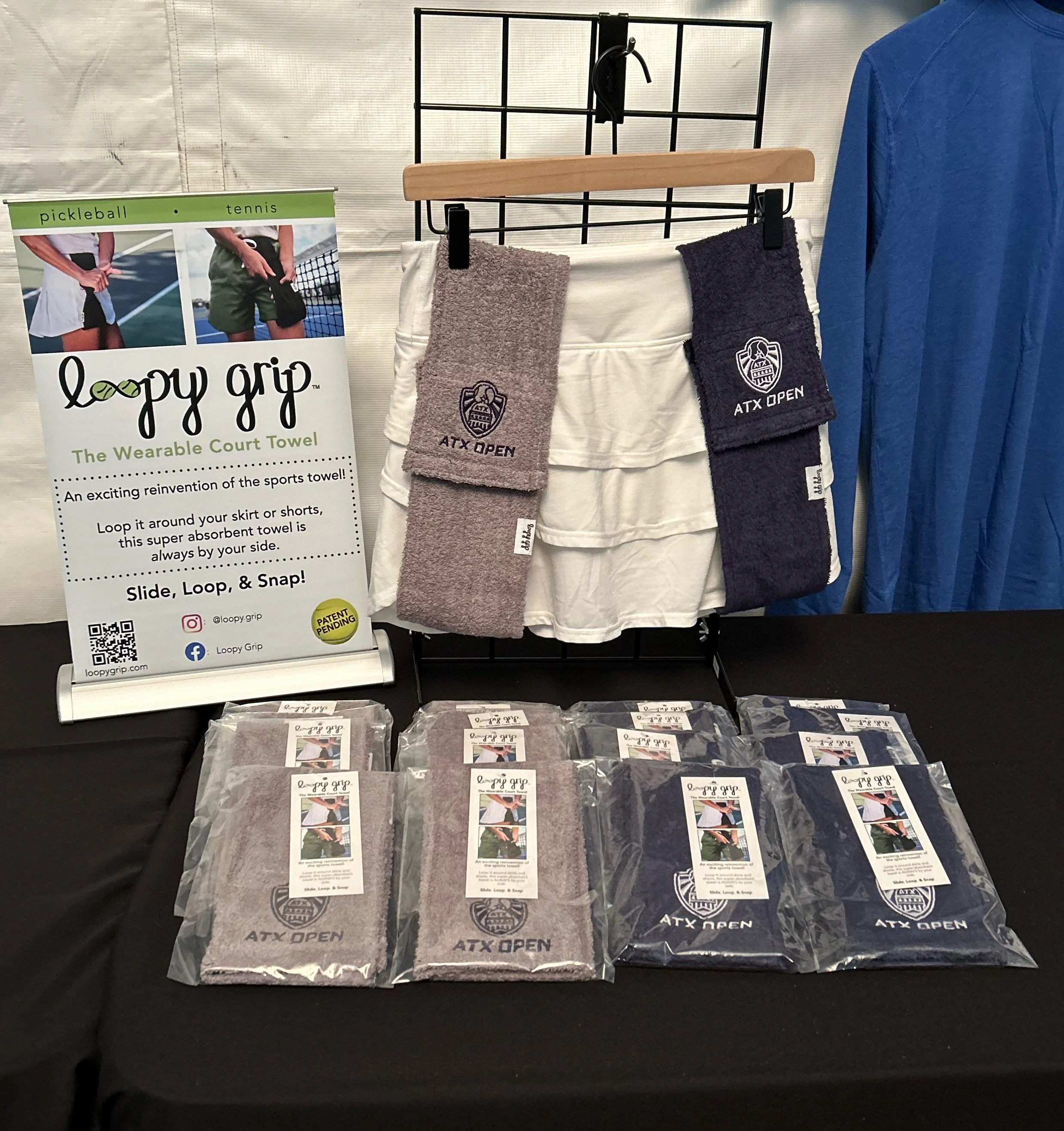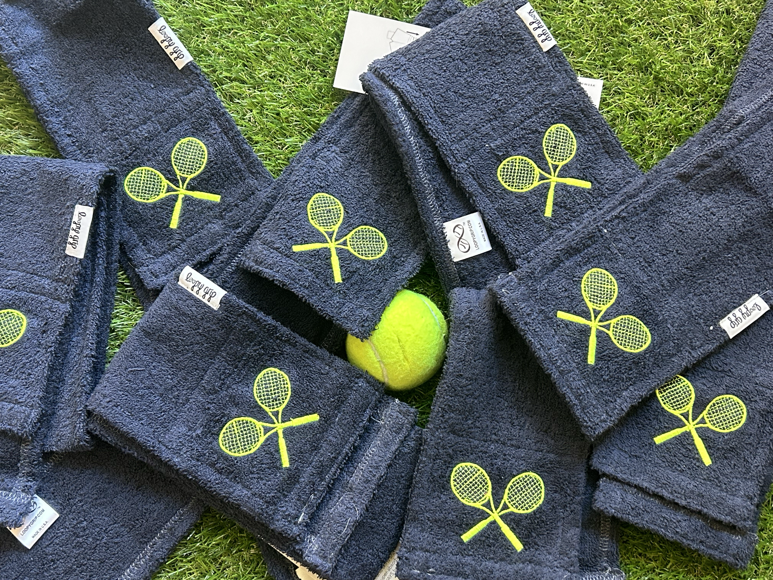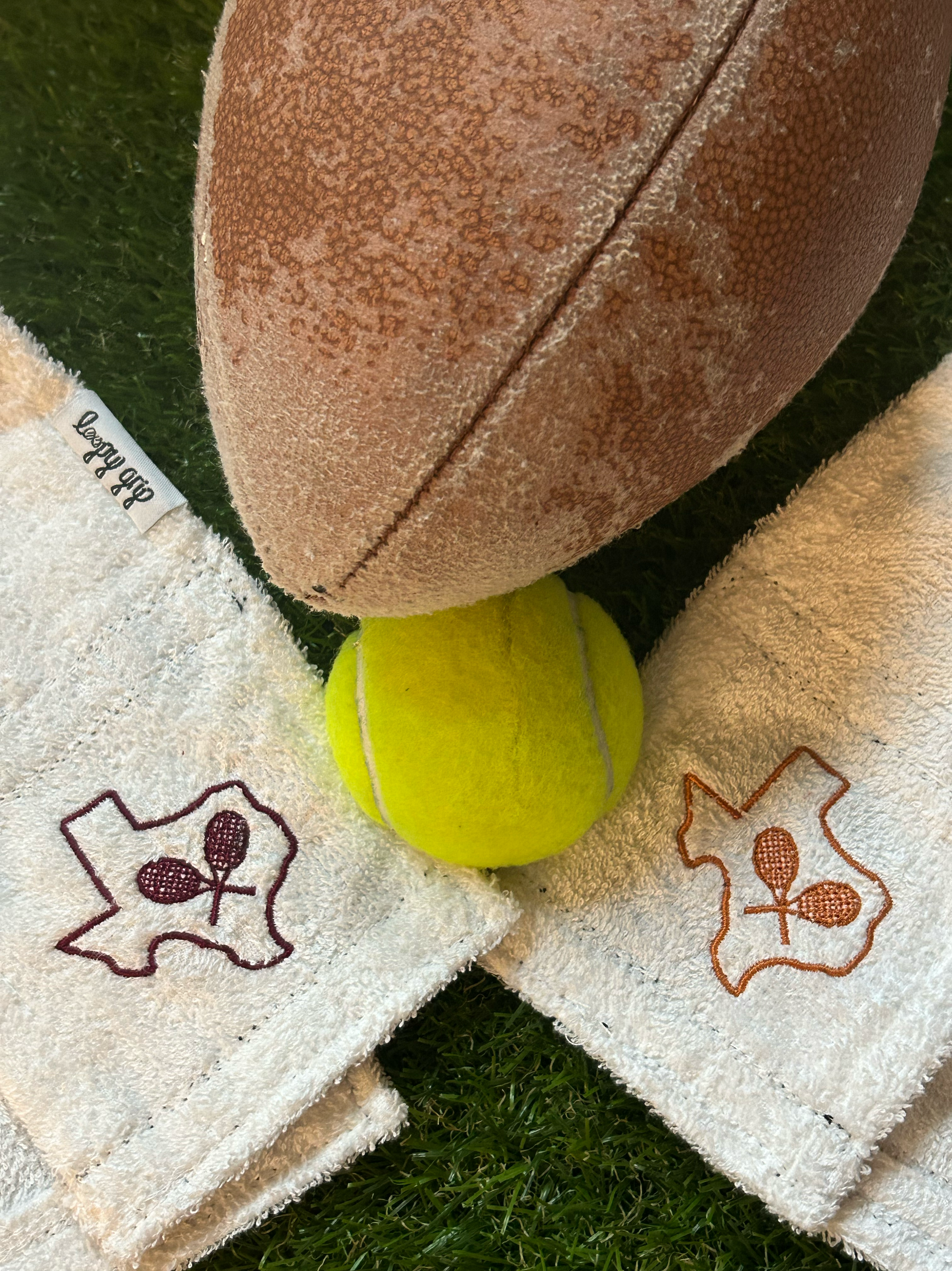 After years of watching players hopelessly wipe their hands against their shorts and skirts in the Texas heat, our founders decided to come up with a solution. Our patent-pending Loopy Grips are an easy, stylish, and highly customizable way to not only show off, but also to keep you swinging confidently when the sweat starts making your grip spin.